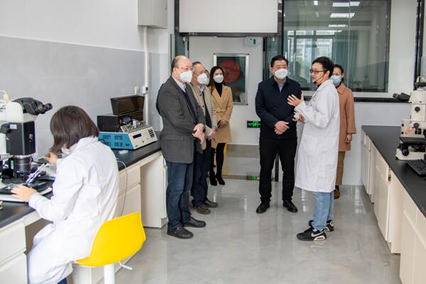 揭牌仪式结束后,参加揭牌仪式的领导和专家参观了中心实验室,详细了解实验室的布局、功能分区、研究内容和发展规划、实验室建设情况和实验设备的使用情况。在参观丝质制样室时,领导和专家对蚕丝强度测试实验产生了浓厚兴趣,并现场观看了测试过程,对实验室在科研中的作用给予了肯定。