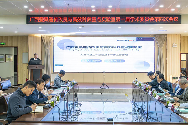 2026年3月12日上午,广西蚕桑遗传改良与高效种养重点实验室(以下简称“实验室”)第一届学术委员会第四次会议在南宁召开。国家蚕桑产业技术体系首席科学家、西南大学蚕桑纺织与生物质科学学院院长、资源昆虫高效养殖与利用国家重点实验室主任代方银教授,广东省人大农村农业委员会副主任廖森泰研究员,江苏科技大学副校长李木旺研究员,浙江省农业科学院蚕桑与茶叶研究所所长王永强研究员,华南农业大学动物科学学院副院长孙京臣教授等9位学术委员会成员应邀出席。